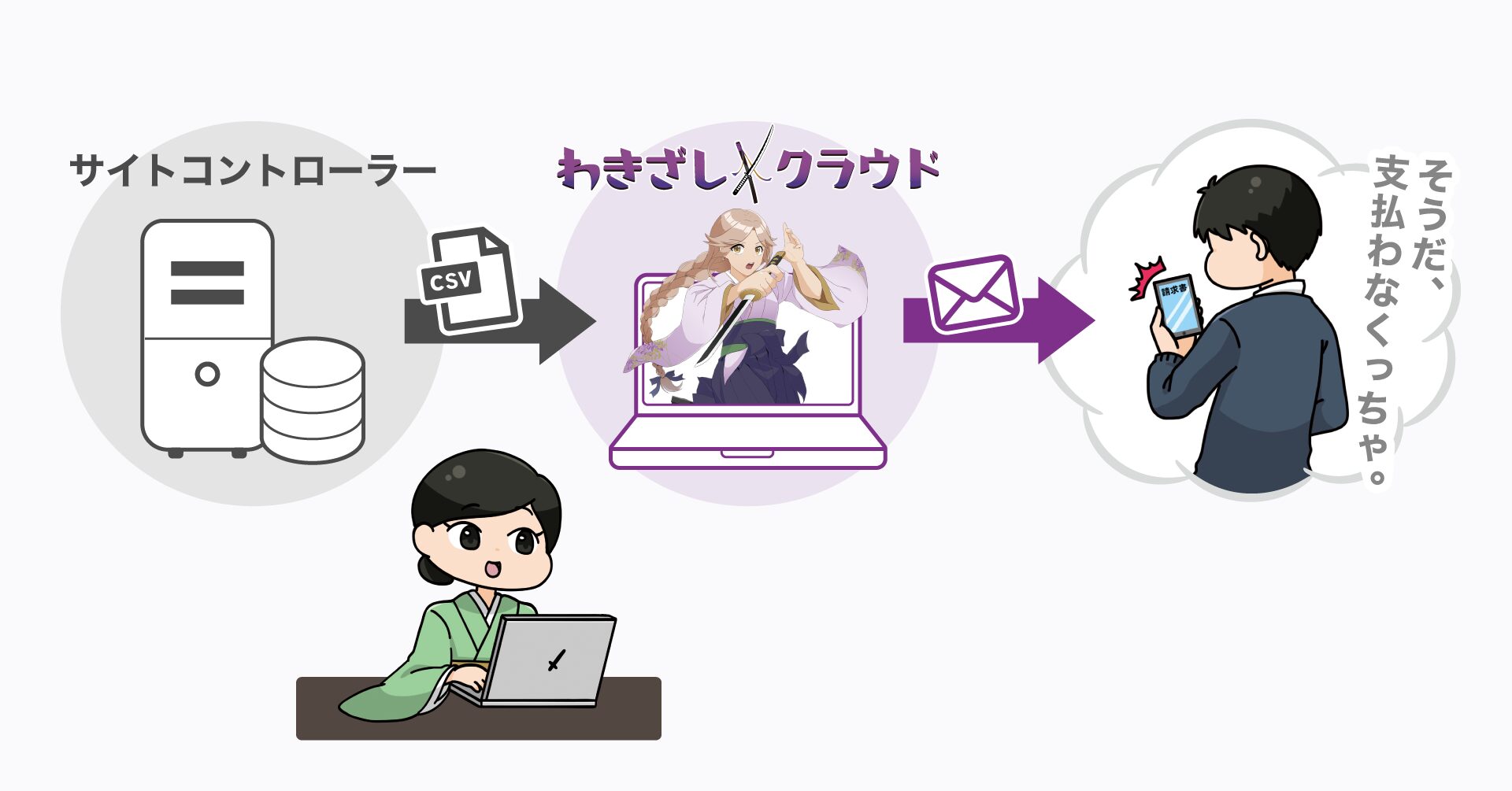 「らく通with」から出力したCSVファイルをわきざしクラウドにインポートすることで、より早く、より簡単に請求書を発行できるようになりました。